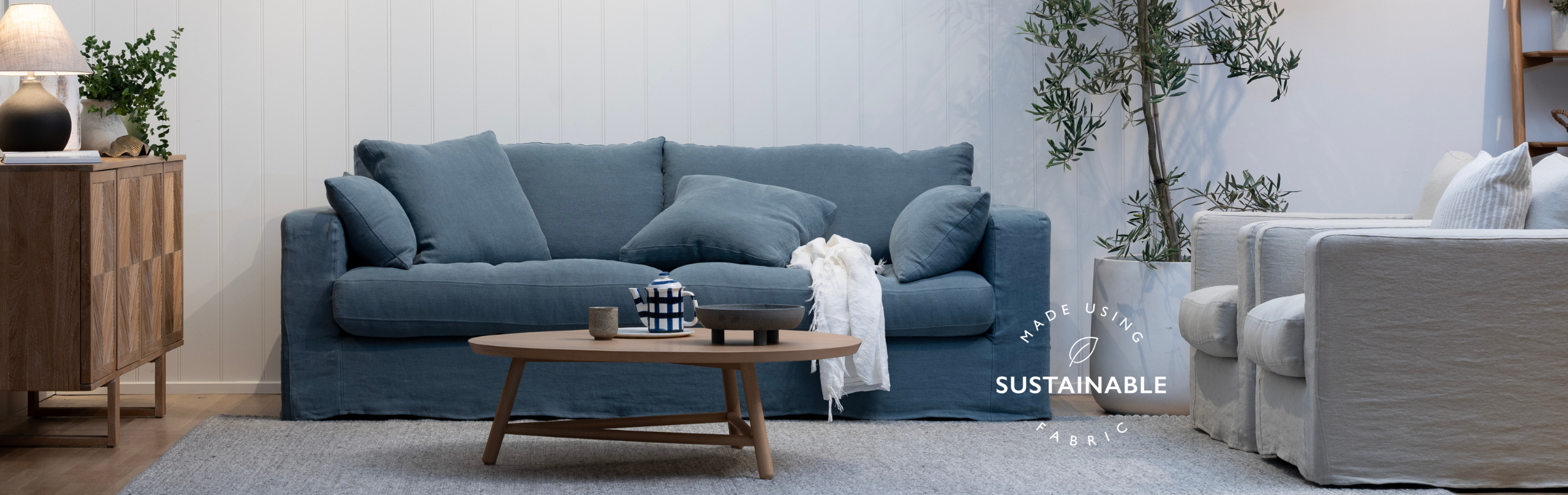 From our efforts to working with sustainable fabrics like Hemp – an environmentally friendly fabric that uses less water and energy to produce (which means less impact on the land) to extending the life of your locally made sofa with our range of dry clean friendly upholstery fabrics and the option to purchase a second cover, every part of Our Sustainable Story has been thoughtfully considered.