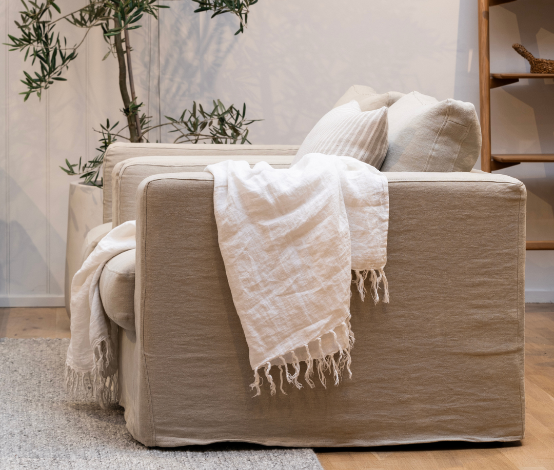 Hemp is a natural resource, having been grown for thousands of years providing warmth, protection and comfort. Our Hemp is made in Belgium, and is stone washed to help increase the softness and flexibility of the fabric, perfectly suited to use for our loose slip cover designs. It uses less water to produce, requires absolutely no chemical sprays during it’s growing cycle, natural irrigation and requires very little energy during harvesting. Making our Hemp a sustainable, recyclable and biodegradable choice.