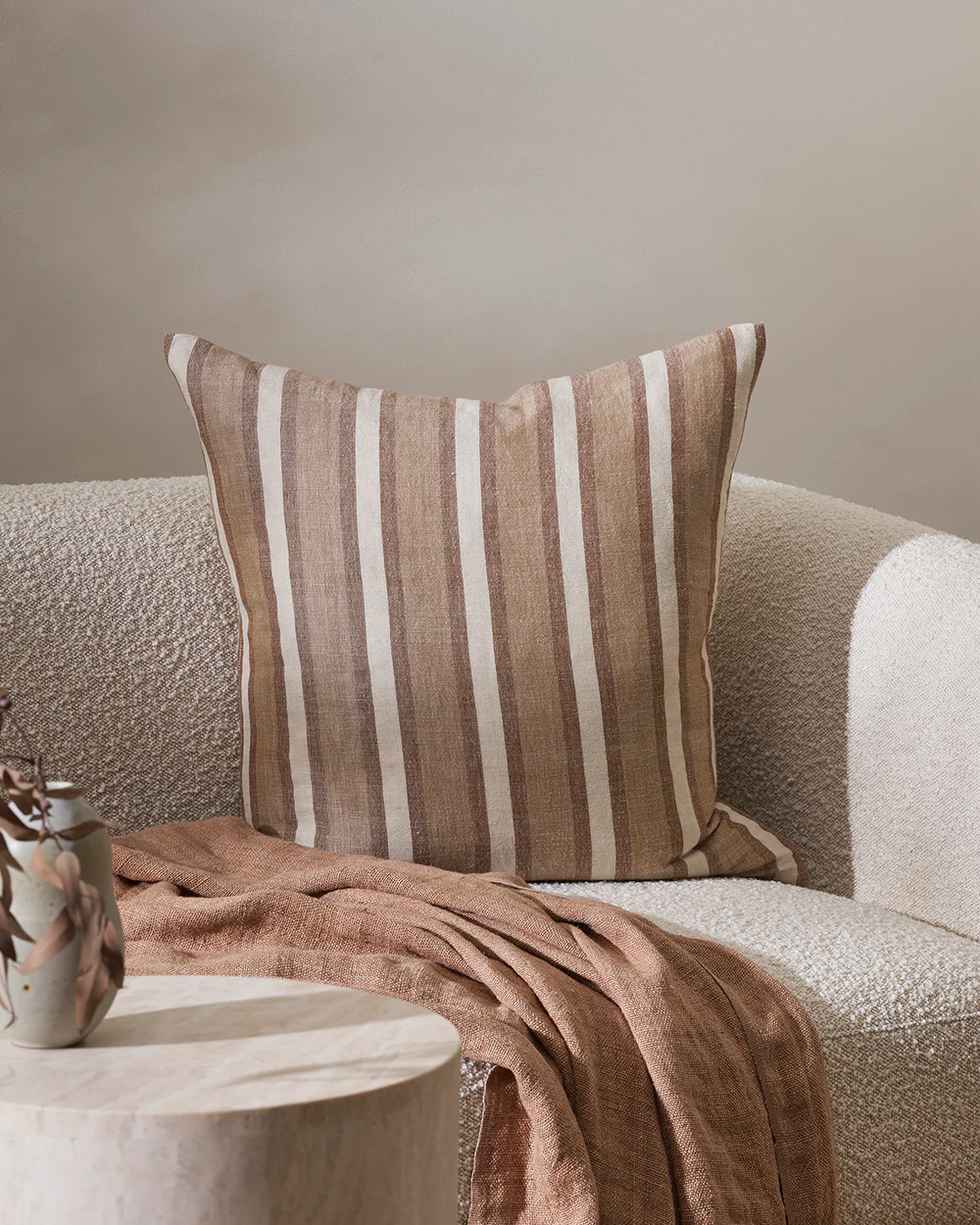 Create a timeless and inviting aesthetic with the simplicity of our Brighton cushion. Handwoven in a blend of natural fibres, tones of ash, slate, and ivory come together in a contemporary take on a classic stripe design.