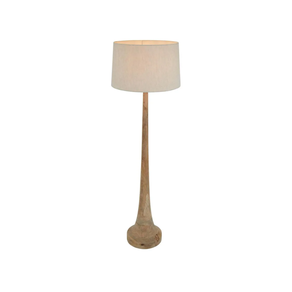 Crafted from light natural timber, this floor lamp combines organic texture with timeless design. Paired with a linen drum shade, it creates a warm and inviting glow perfect for any living space. For inquiries or product details, please visit our showroom.
