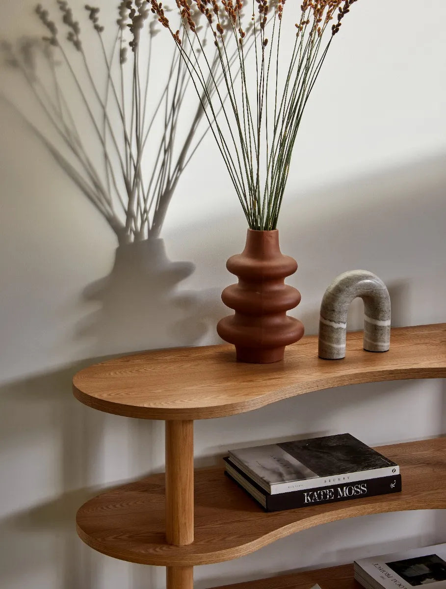 The Rufus Arch sculpture, crafted from sumptuous marble, features simple and minimalistic design. Its curves and resolute style make it a perfect choice for a mantel, side table, or console.